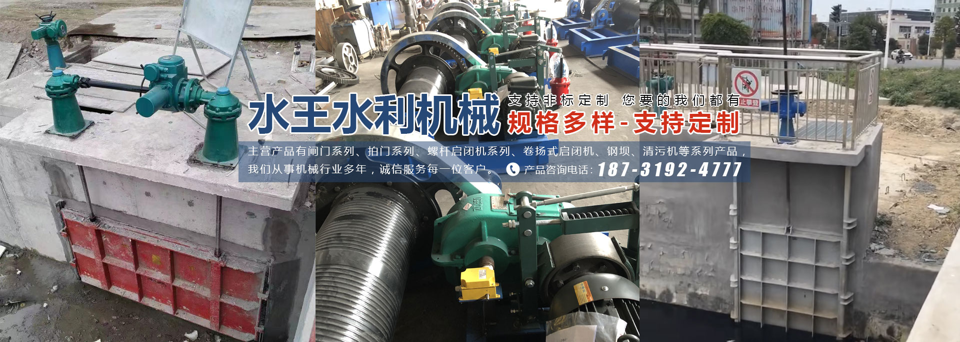 河北水王水利機(jī)械有限公司專業(yè)生產(chǎn)銷售鑄鐵閘門、啟閉機(jī)、閘門、固定卷揚(yáng)啟閉機(jī)、移動卷揚(yáng)啟閉機(jī)、電裝啟閉機(jī)、鑄鐵鑲銅閘門、鋼制閘門、翻板閘門、不銹鋼閘門、景觀壩、鋼壩、液壓翻板閘門、鑄鐵拍門、鋼制拍門等各種材質(zhì)拍門、橡膠止水的專業(yè)制造、生產(chǎn)及指導(dǎo)安裝的綜合性廠家,具有現(xiàn)代化管理模式,產(chǎn)品結(jié)構(gòu)合理,性能可靠,確保向客戶提供高質(zhì)量的產(chǎn)品和周到的售后服務(wù),是制造、銷售、安裝一體化的規(guī)模型水利工程機(jī)械生產(chǎn)企業(yè)。 主導(dǎo)產(chǎn)品: 1、螺桿式啟閉···